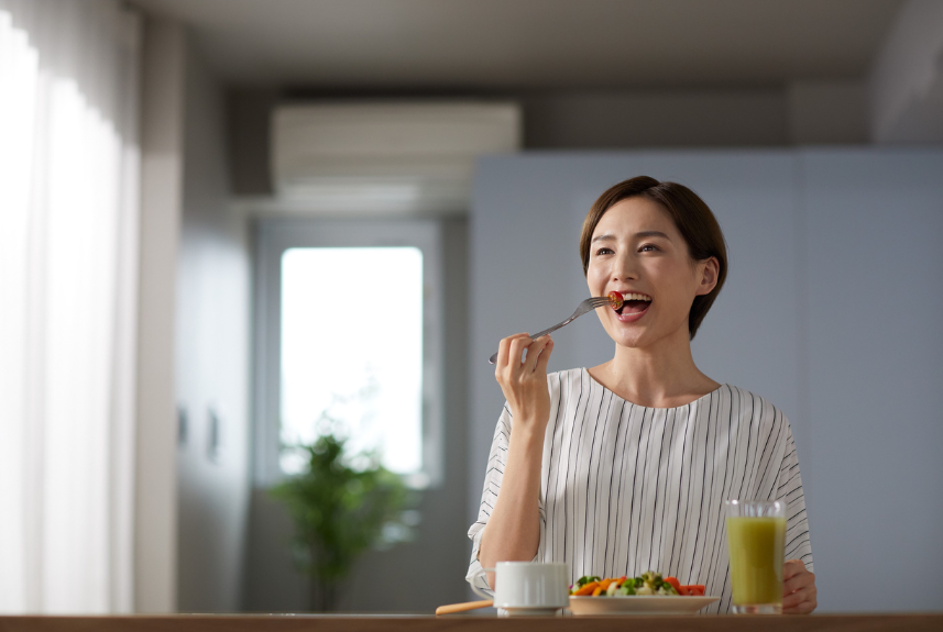 食事の際にゆっくり噛むことを意識していますか? 噛む回数が増えると、脳の満腹中枢がしっかりと刺激されるため、食事量が少なくても満足感を得やすくなります。さらに、よく噛むことで消化吸収がスムーズになり、胃腸への負担も軽減されます。
