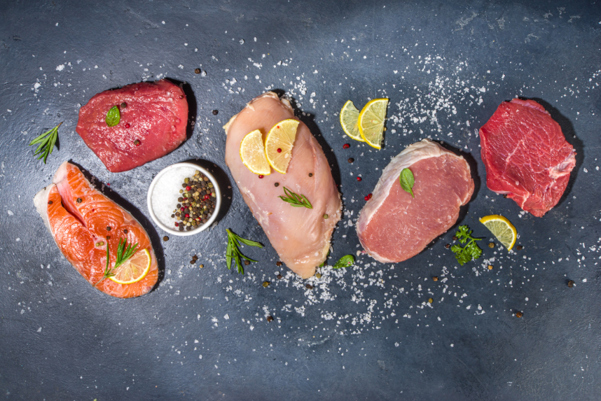 マグロの赤身や青魚、豚肉・牛肉ならヒレ肉やモモ肉、鶏肉ならササミやムネ肉(皮なし)など、脂肪分が少ない部位がおすすめです。