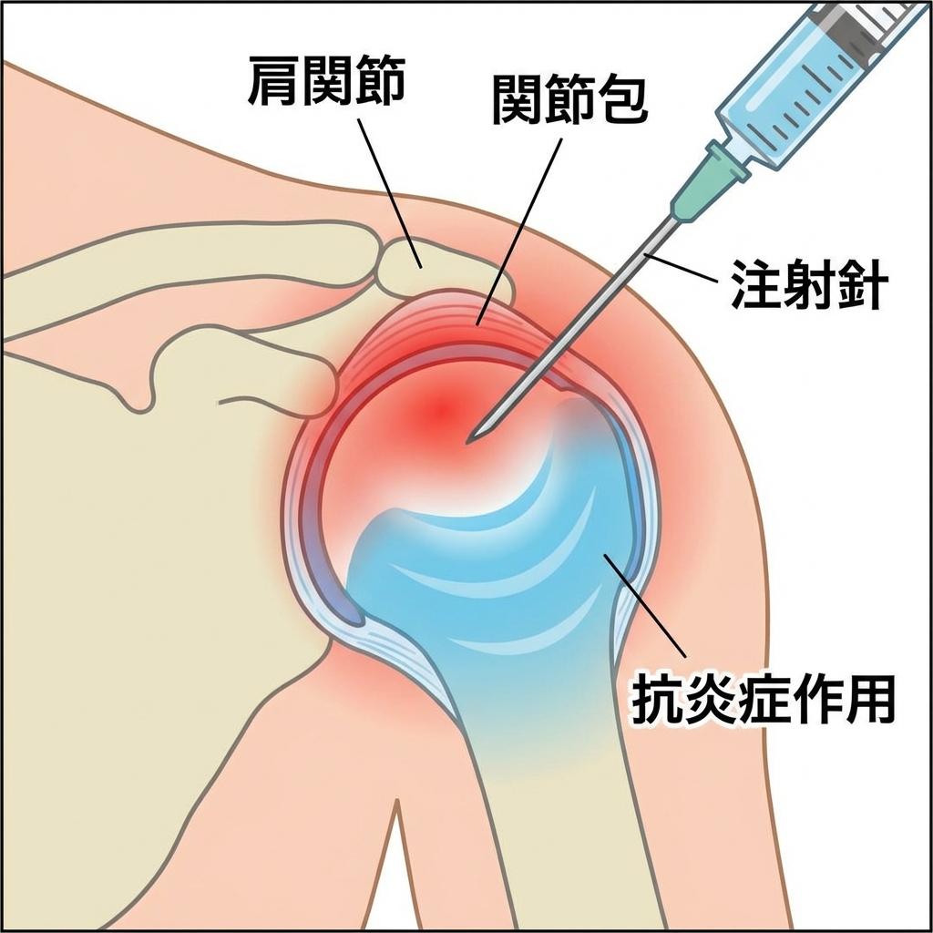 – 注射療法:痛みが非常に強い場合、関節内にステロイドやヒアルロン酸を注射することがあります。特にステロイド注射は、強い炎症を抑えるのに非常に効果的です[9]。
